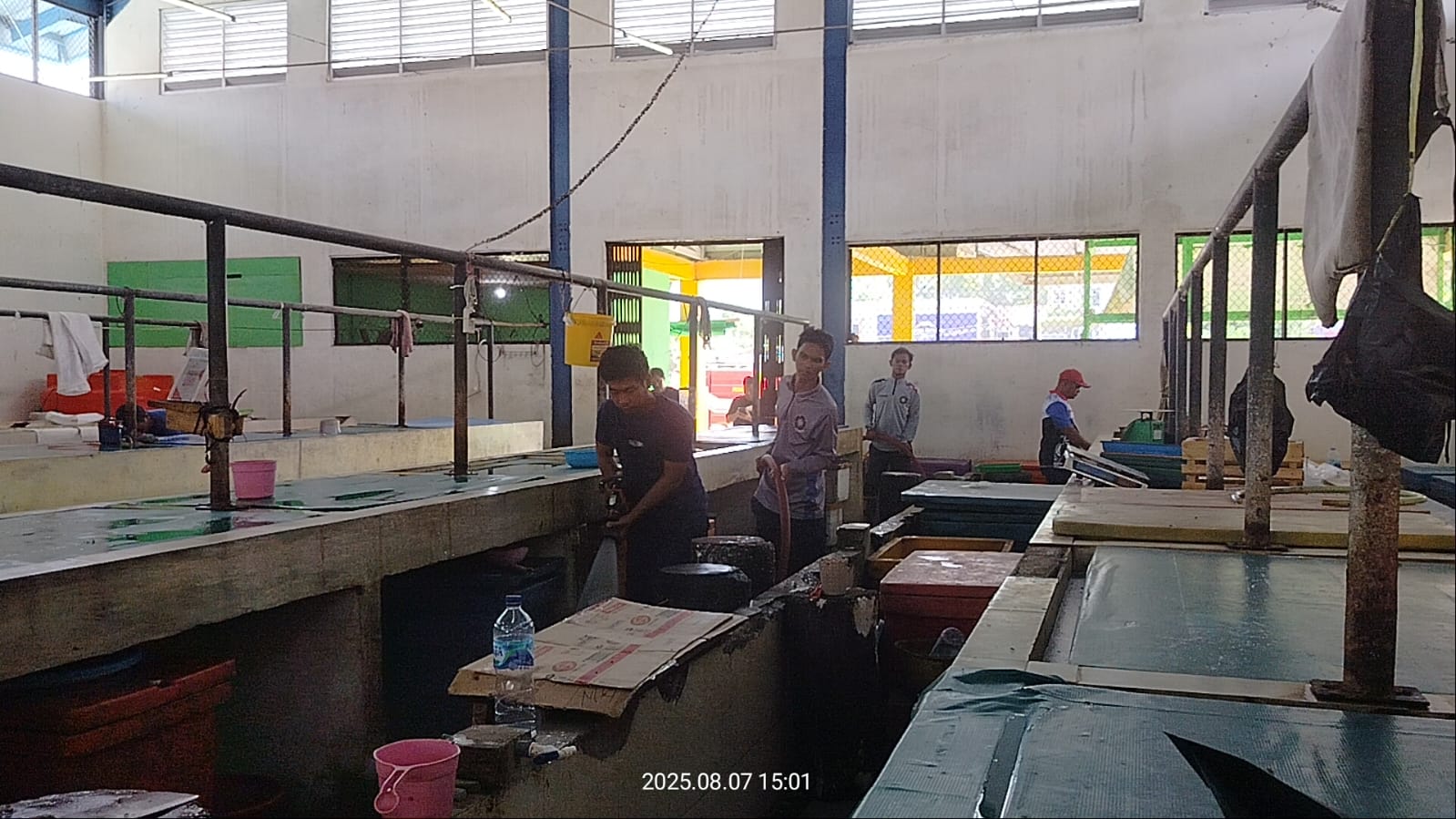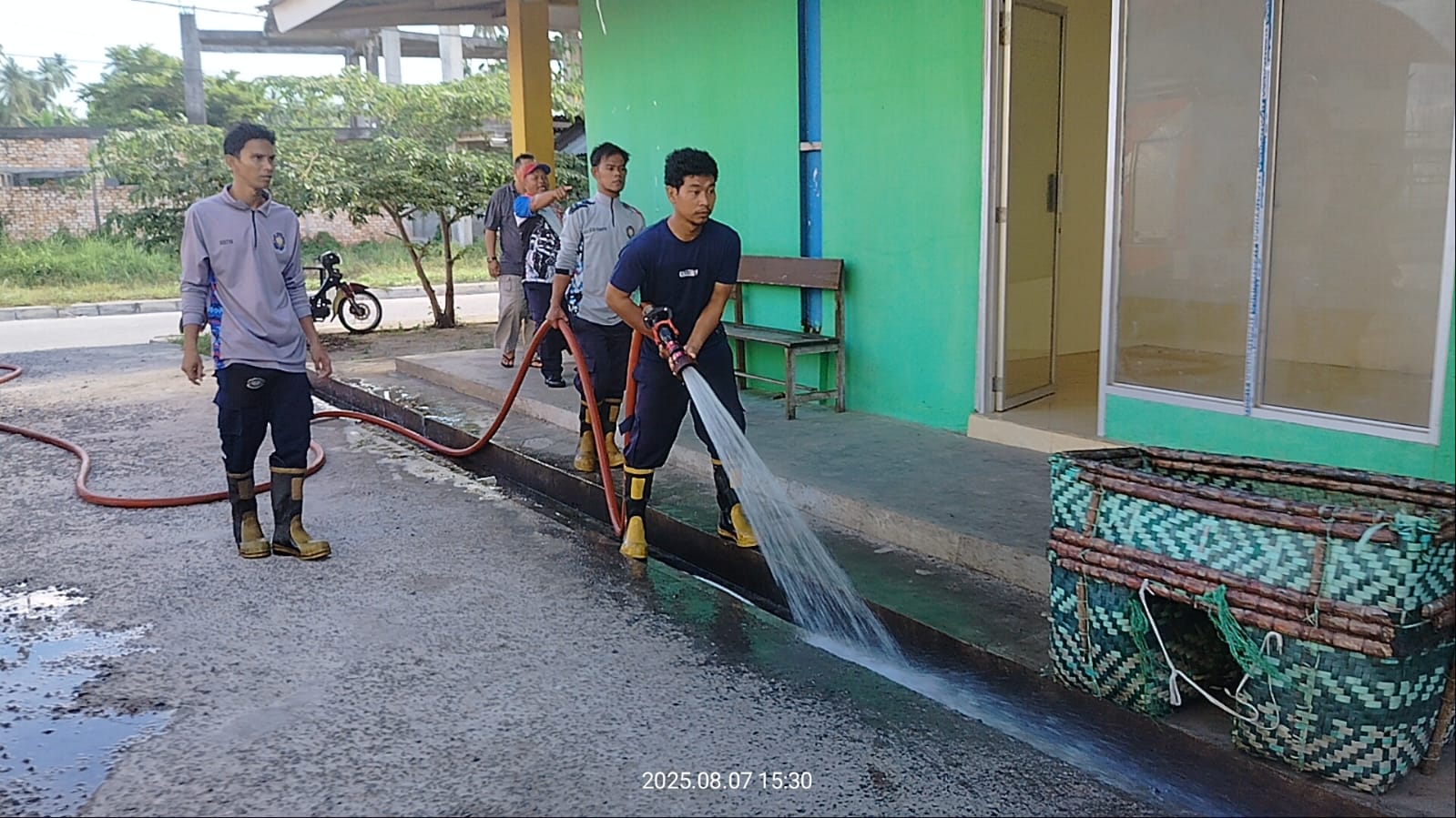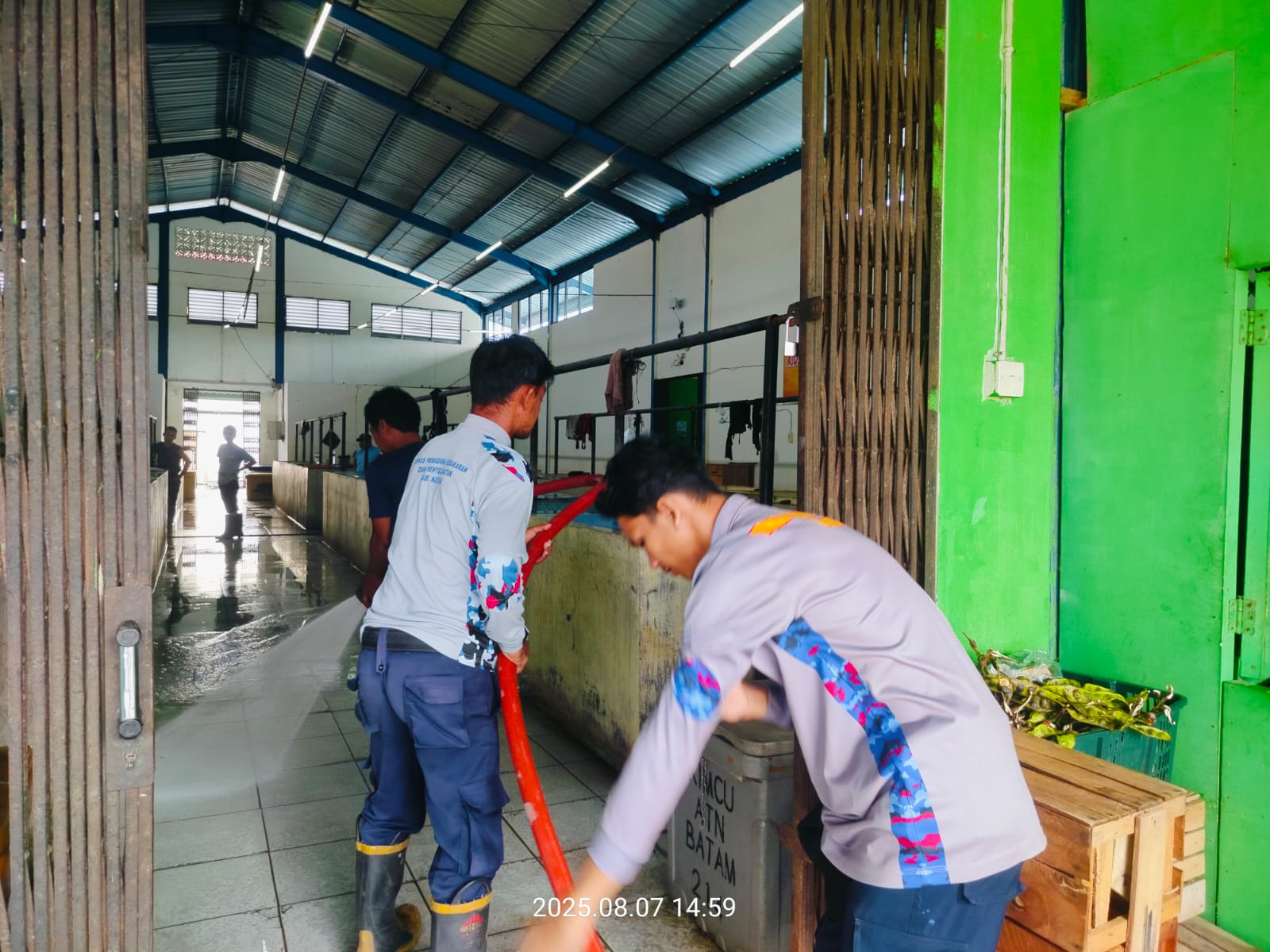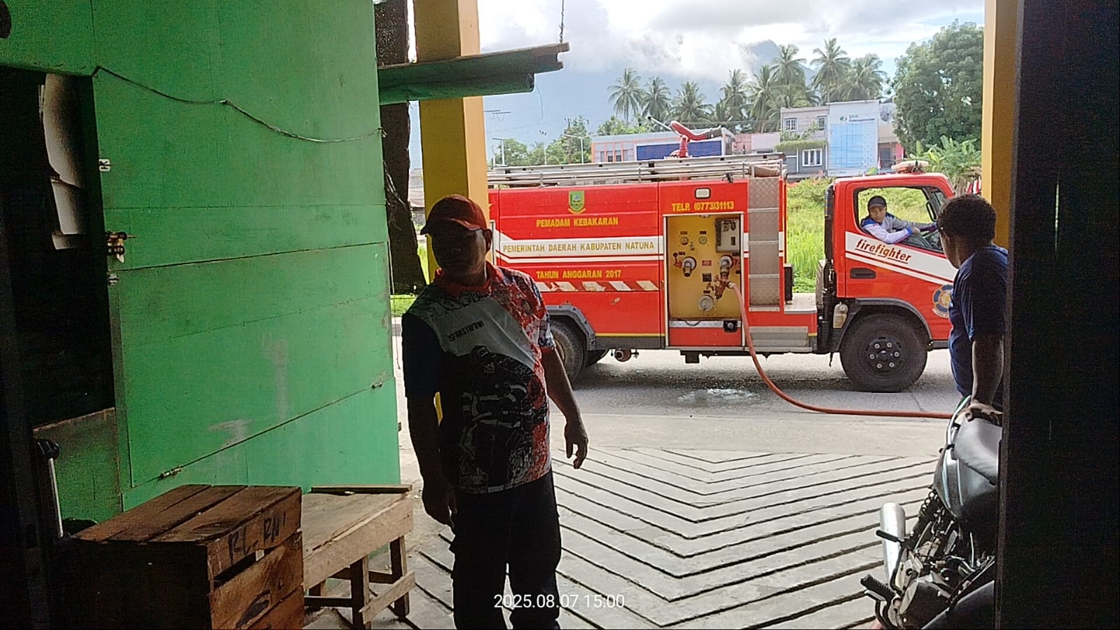 Tim Damkar Melakukan Penyemprotan di Pasar Baru Untuk Membersihkan dan Menghilangkan Bau yang Tidak Sedap Kecamatan Bunguran Timur Kabupaten Natuna Kamis (07/08/2025)