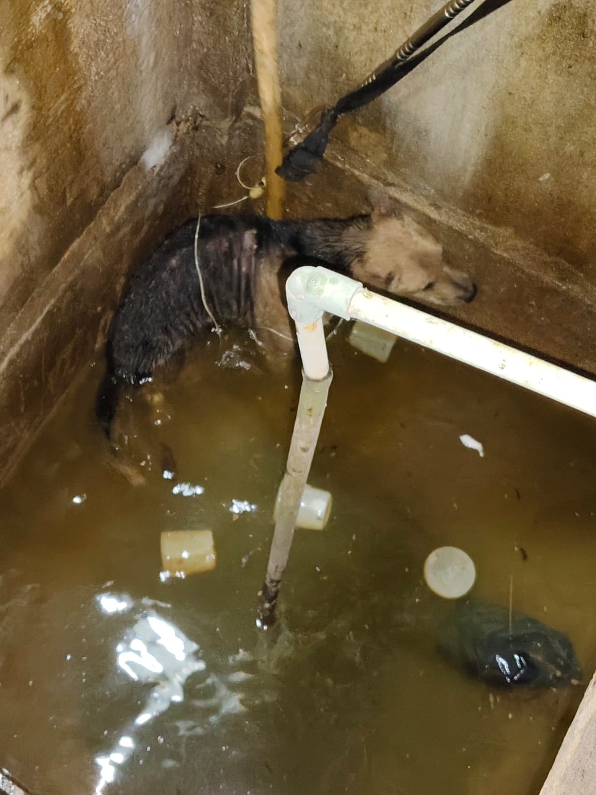 Tim Damkar Melakukan Evakuasi Anjing masuk sumur di Jln Ahmad Yani (cucian motor) Kota Ranai Kecamatan Bunguran Timur Kabupaten Natuna pada Sabtu (19/07/2025)