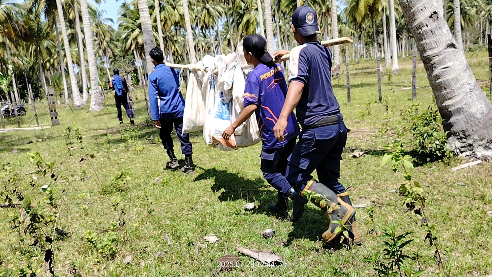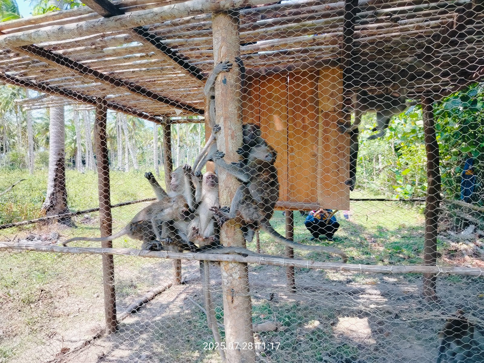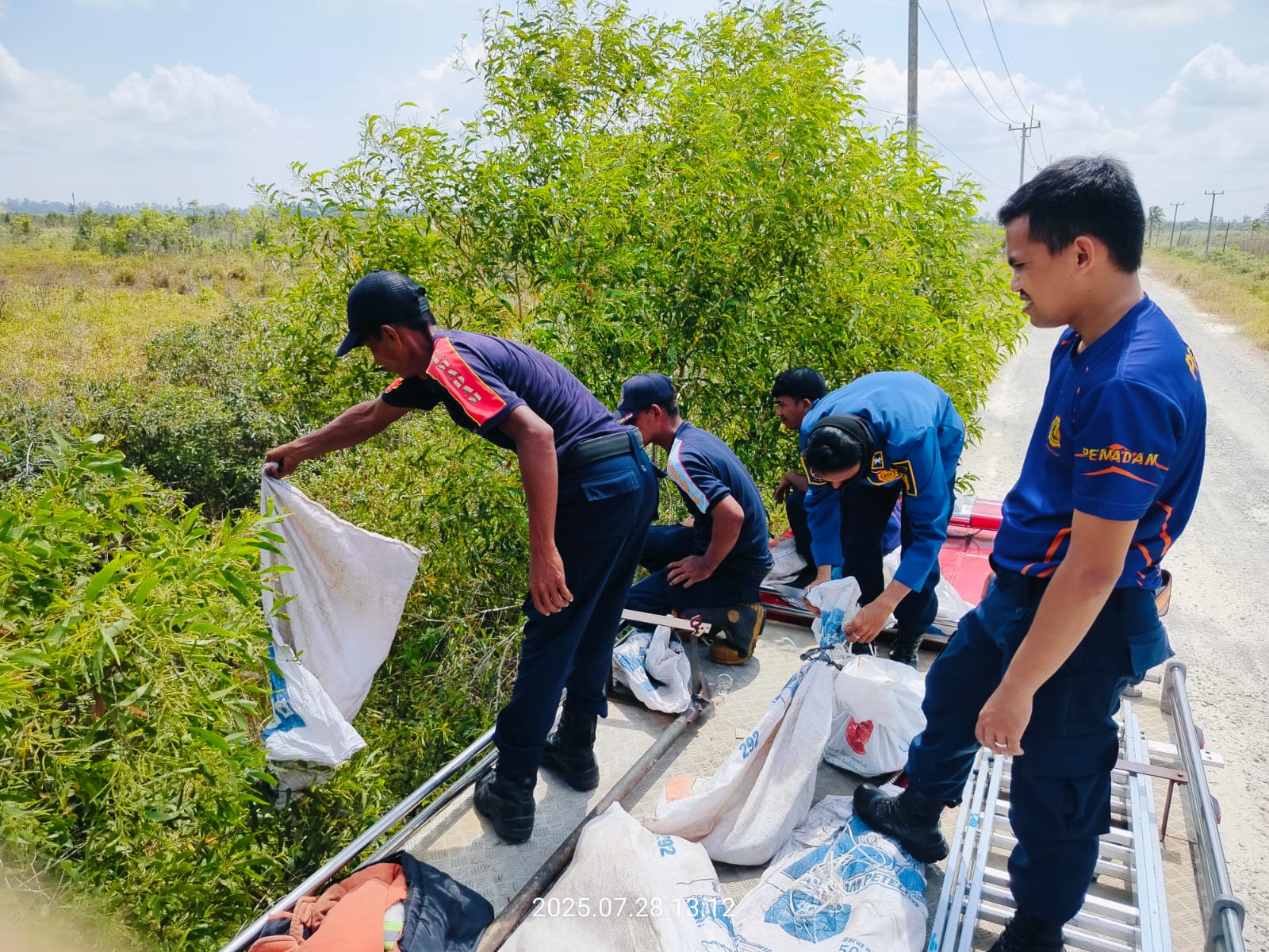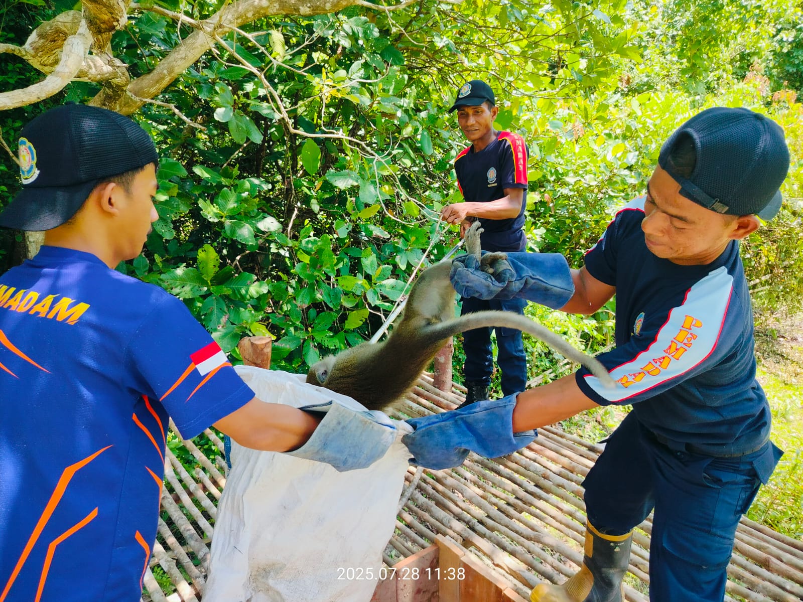 Tim Damkar Melakukan Evakuasi Kera di Cemaga Kecamatan Bunguran Selatan Kabupaten Natuna pada Senin (28/07/2025)