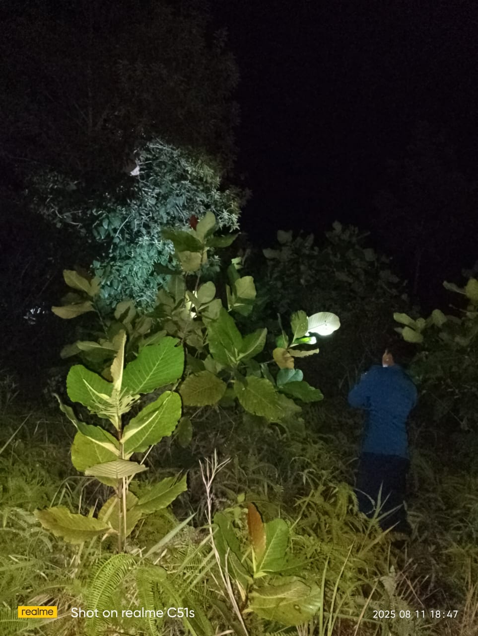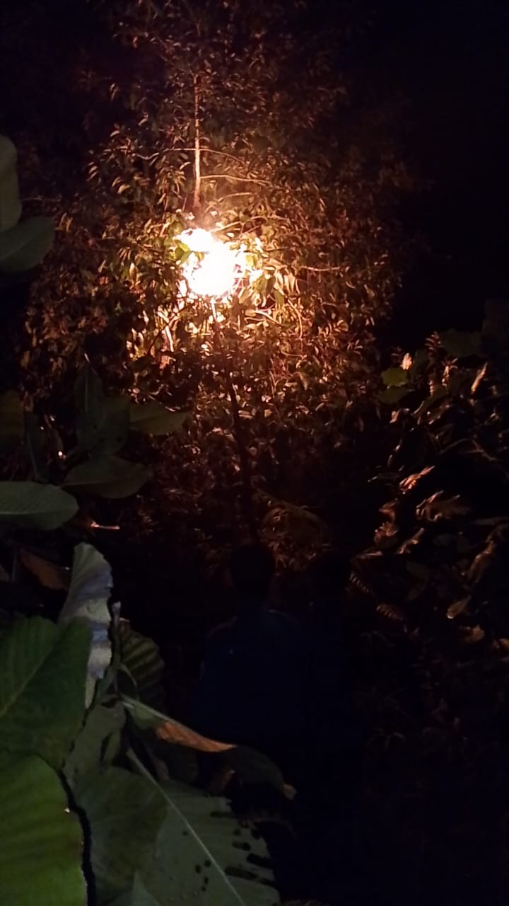 Tim Damkar Melakukan Evakuasi Sarang Tawon di pohon Pekarangan Perumahan Dewan di Puak Kecamatan Bunguran Timur Kabupaten Natuna pada Senin malam (11/08/2025)