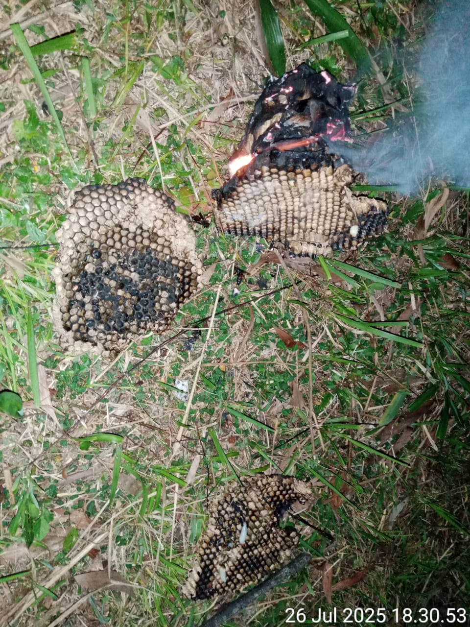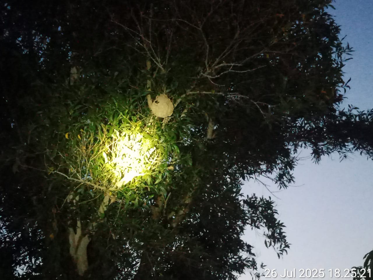 Tim Damkar Melakukan Evakuasi Sarang Tawon yang berada di Pohon Rumah Warga di Ranai Darat Kecamatan Bunguran Timur Kabupaten Natuna pada Sabtu Malam
