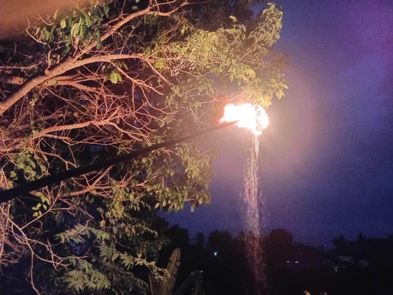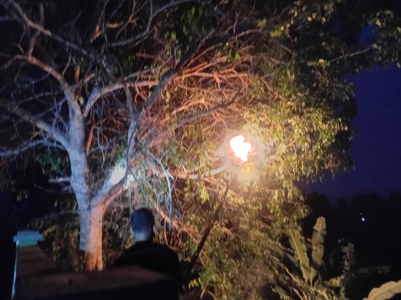 Tim Damkar Melakukan Evakuasi Sarang Tawon di pohon Rumah Warga di Air Lakon Kecamatan Bunguran Timur Kabupaten Natuna pada Minggu malam (03/08/2025)