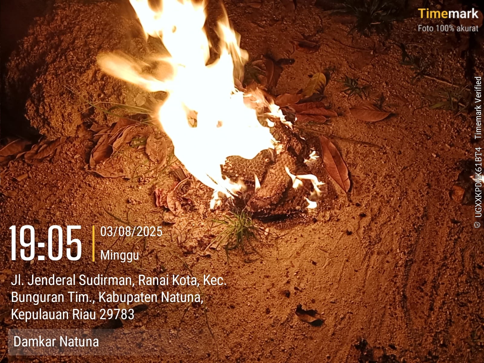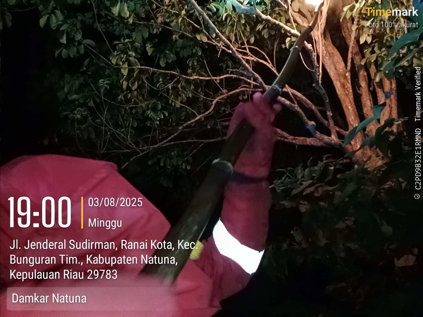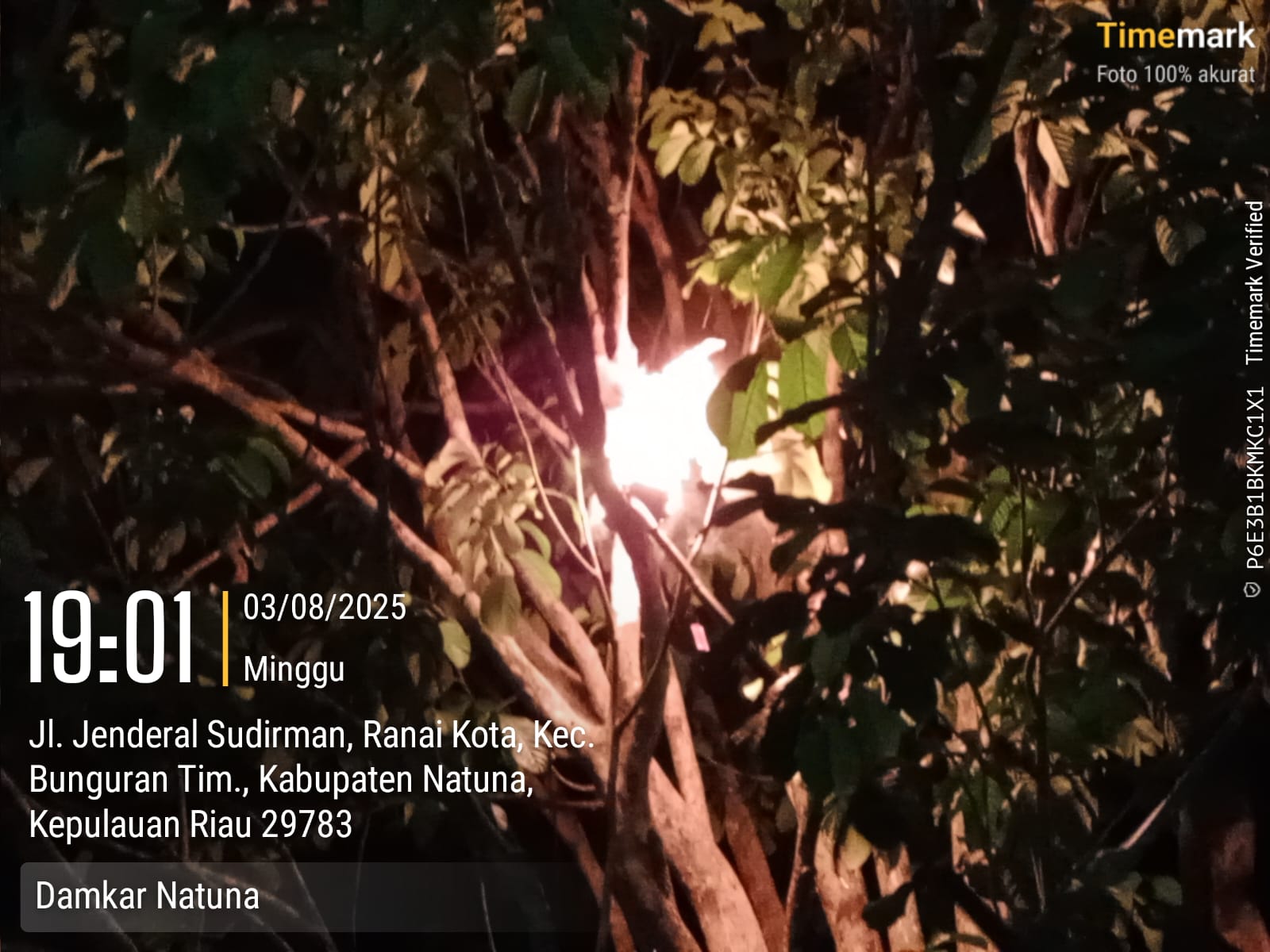 Tim Damkar Melakukan Evakuasi Sarang Tawon di pohon Rumah Warga di Jlan Sudirman Kecamatan Bunguran Timur Kabupaten Natuna pada Minggu malam (03/08/2025)
