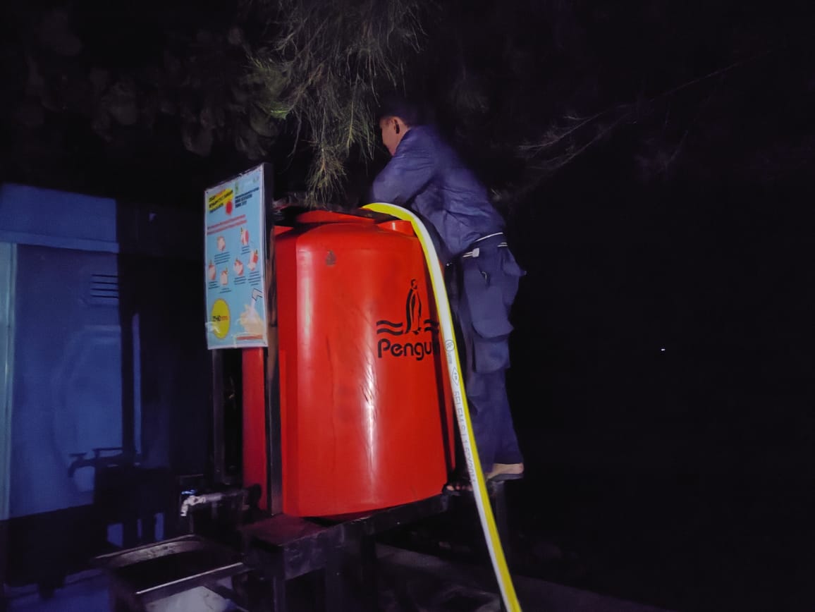 Tim Damkar Melakukan Pengisian Air Toren Persiapan Upacara HUT RI ke 80 Kecamatan Bunguran Timur Kabupaten Natuna Sabtu malam (16/08/2025)